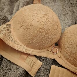 • Biustonosz Push-Up Zbierający Efekt Ręki Koronka Beżowy